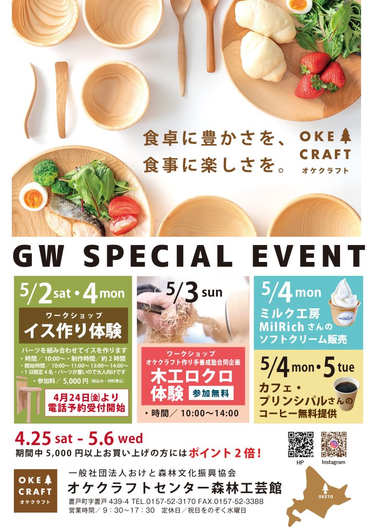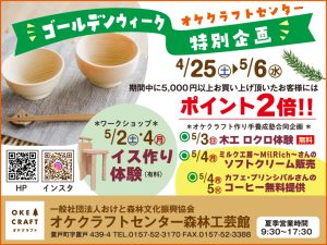 日時:5月2日(土)・4日(月) 各日10:00~ 製作時間 約2時間